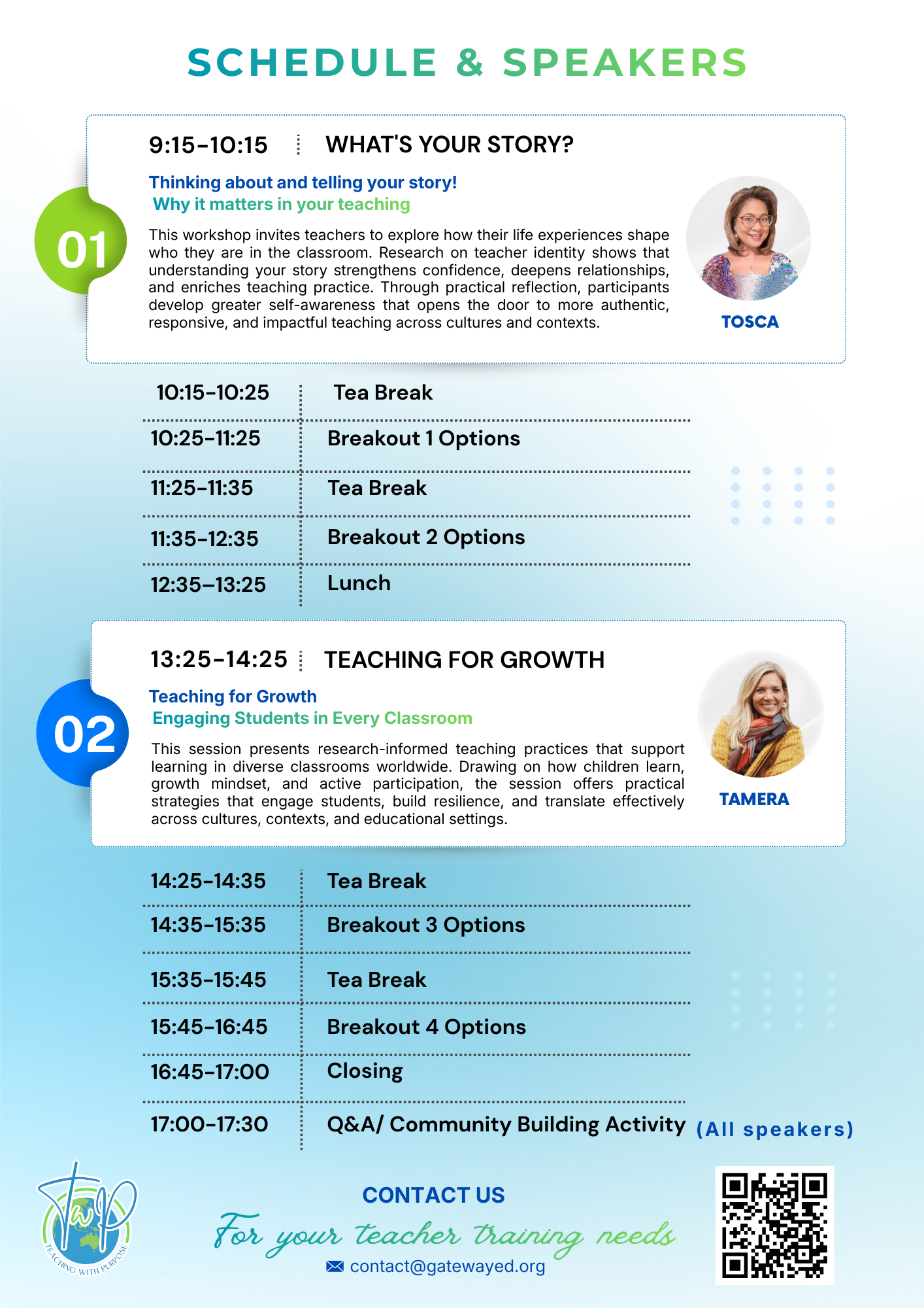 Thinking about and telling your story — why it matters in your teaching This workshop invites teachers to explore how their life experiences shape who they are in the classroom. Research on teacher identity shows that understanding your story strengthens confidence, deepens relationships, and enriches teaching practice. Through practical reflection, participants develop greater self-awareness that opens the door to more authentic, responsive, and impactful teaching across cultures and contexts. |